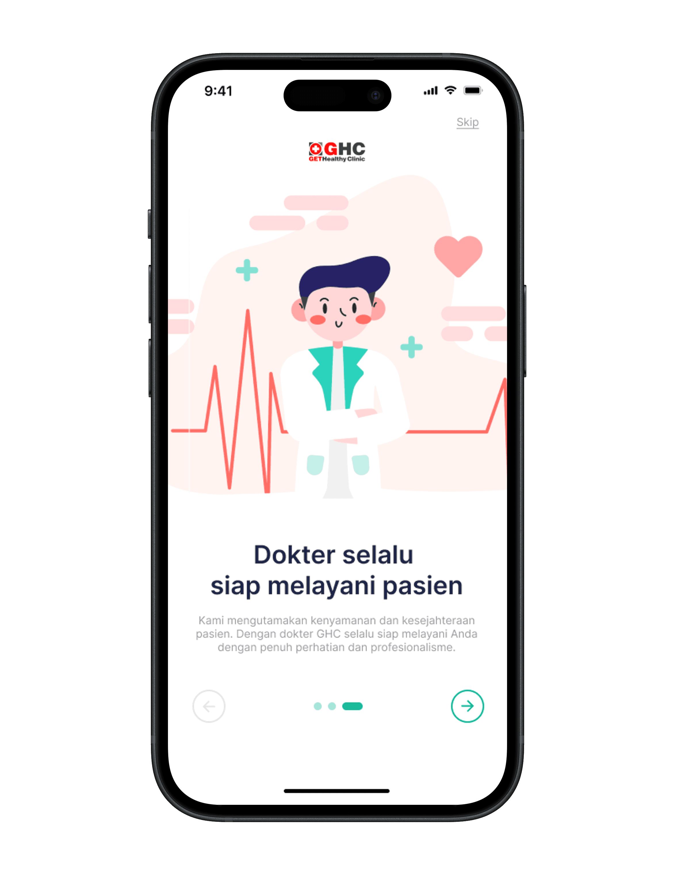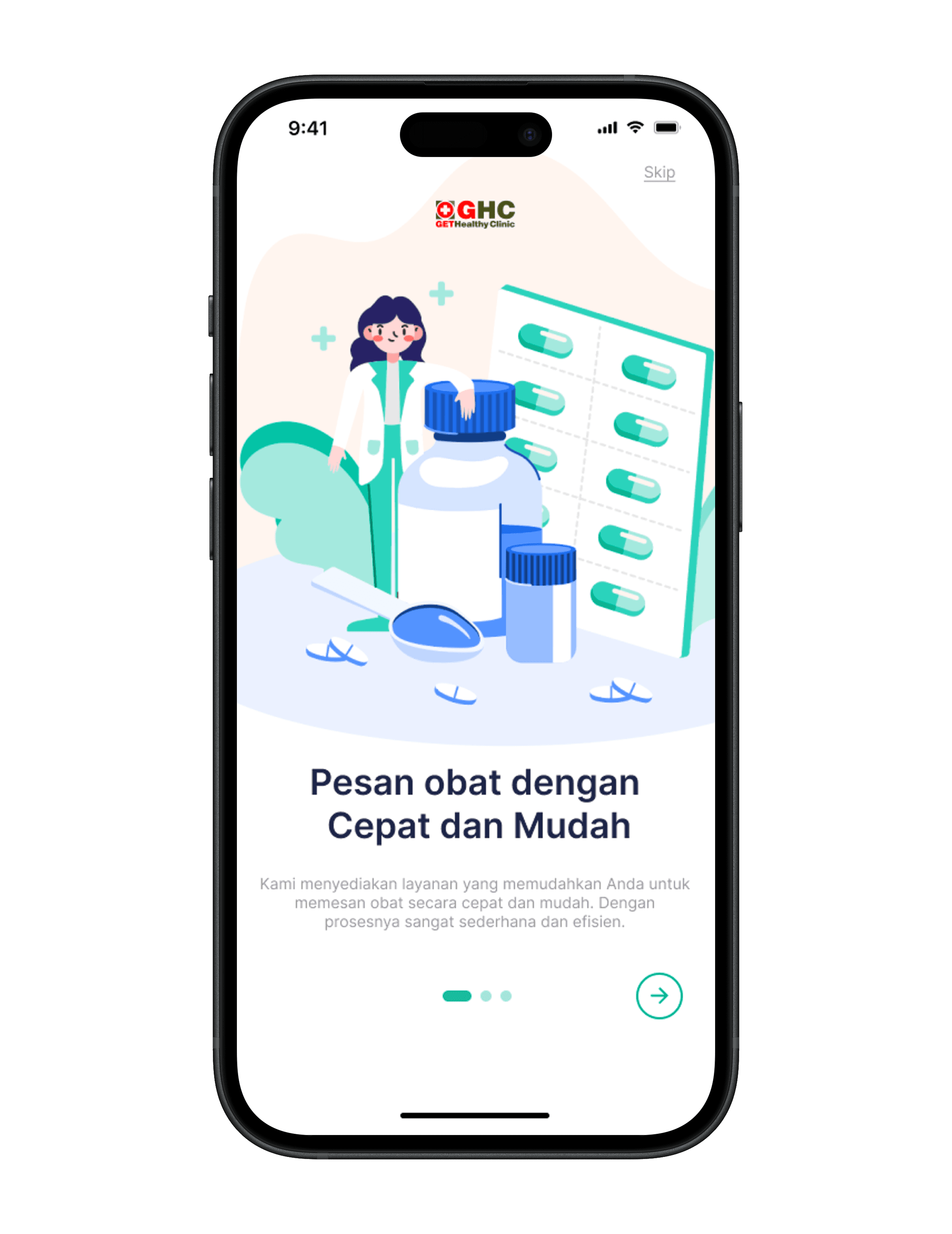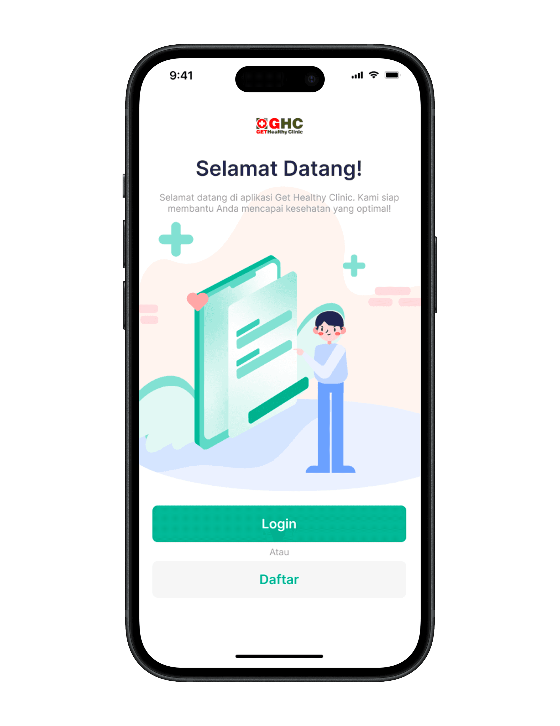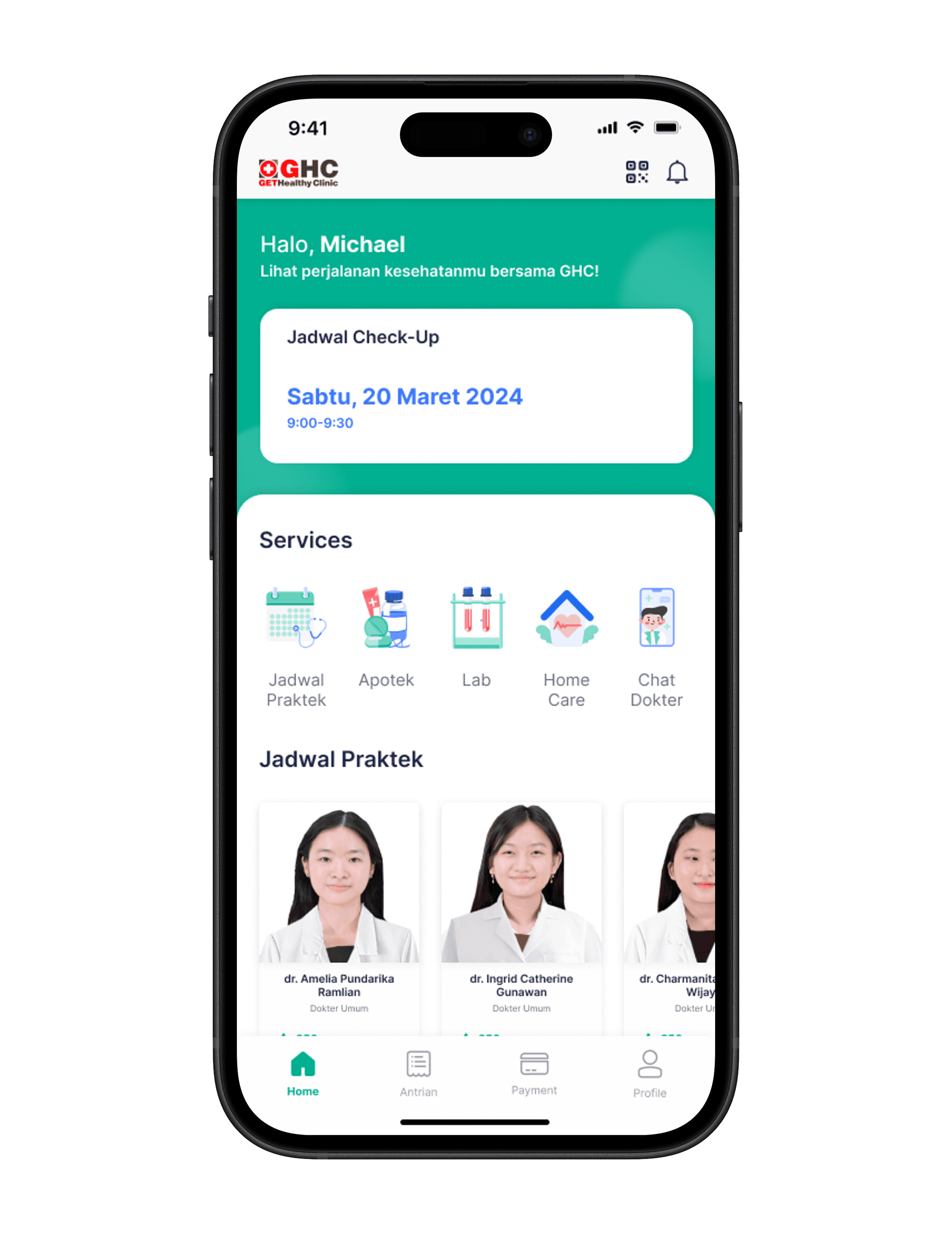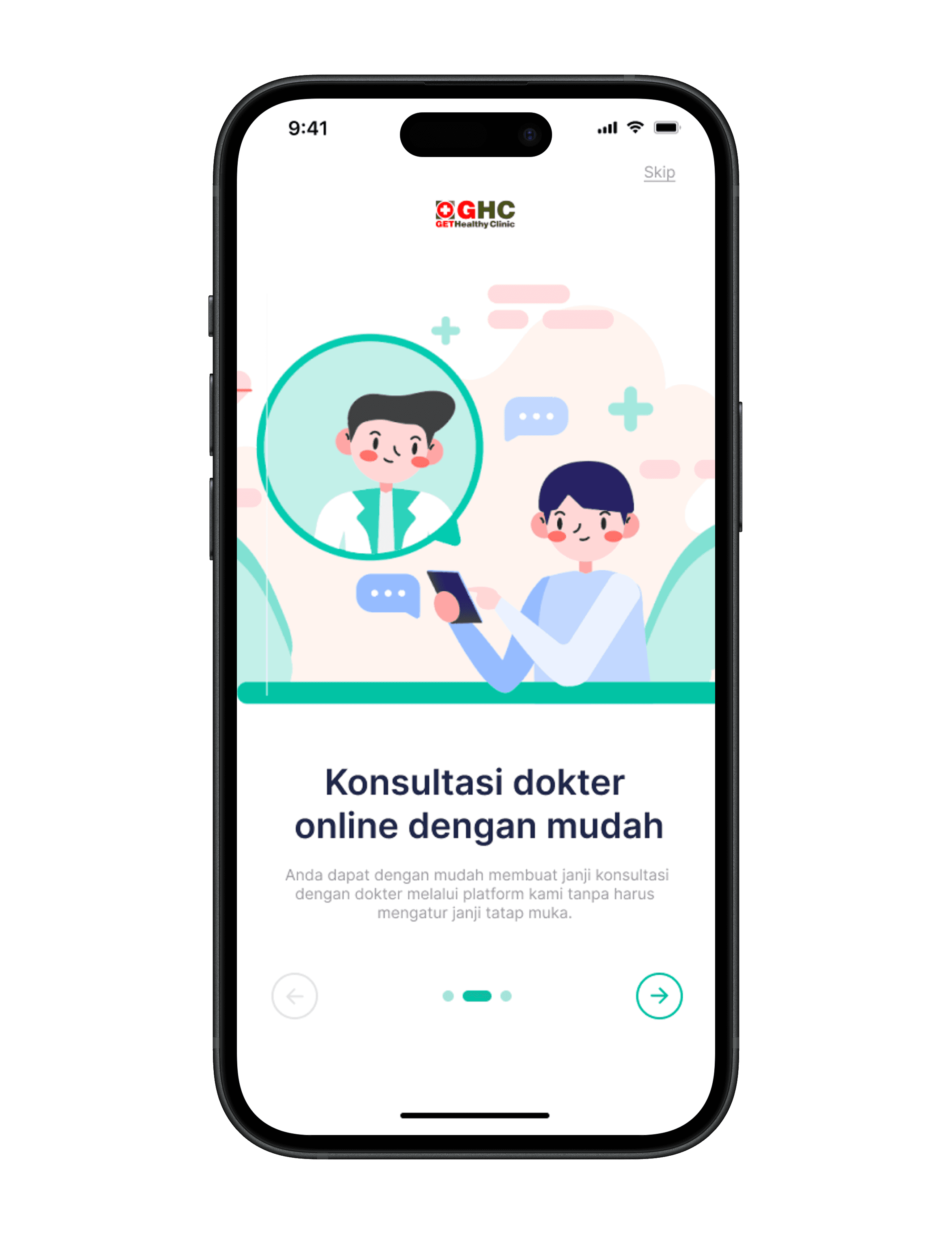 GHC is a health clinic that offers a digital platform allowing users to perform various activities such as scheduling medical appointments, purchasing medication from pharmacies, using laboratory services, communicating with doctors through online chat, and accessing at-home care services.