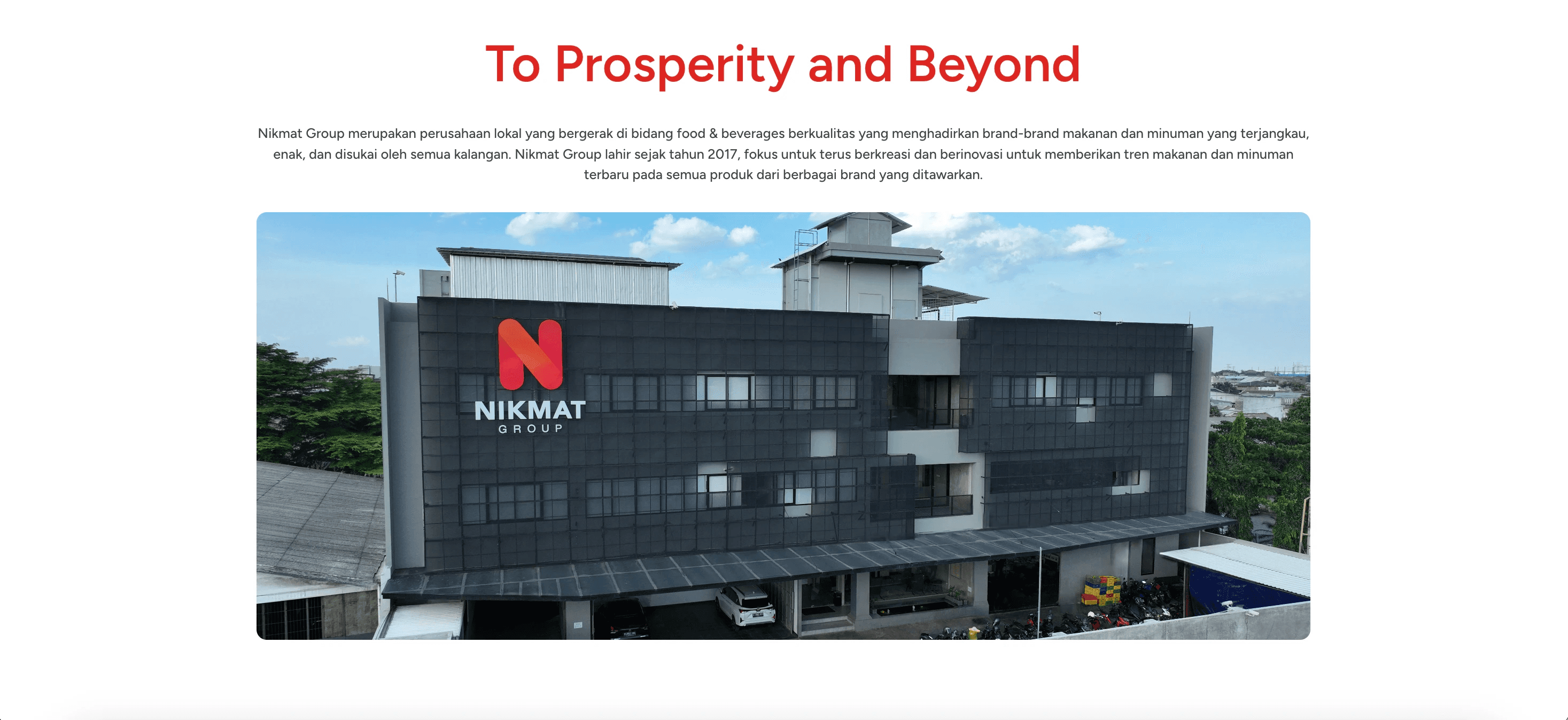 In our research for Nikmat Group, we explored the company’s story, values, and diverse range of brands to understand what makes them stand out in the local food and beverage scene. This process helped us capture the essence of the company, from its beginnings to its continuous drive to create food and beverage brands: